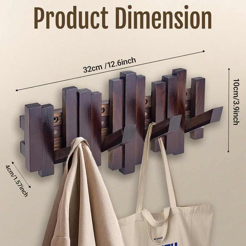 2pcs Natural Wood Wall-Mounted Piano Key Coat Rack with 4 Hooks - Solid Wood Entryway Organizer