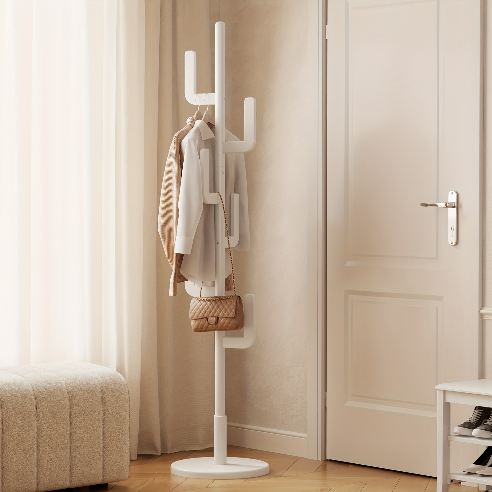 KASLANDI Solid Wood Cactus Coat Rack, Classic with Grid Shelf And 1.59 gal-shaped Hooks